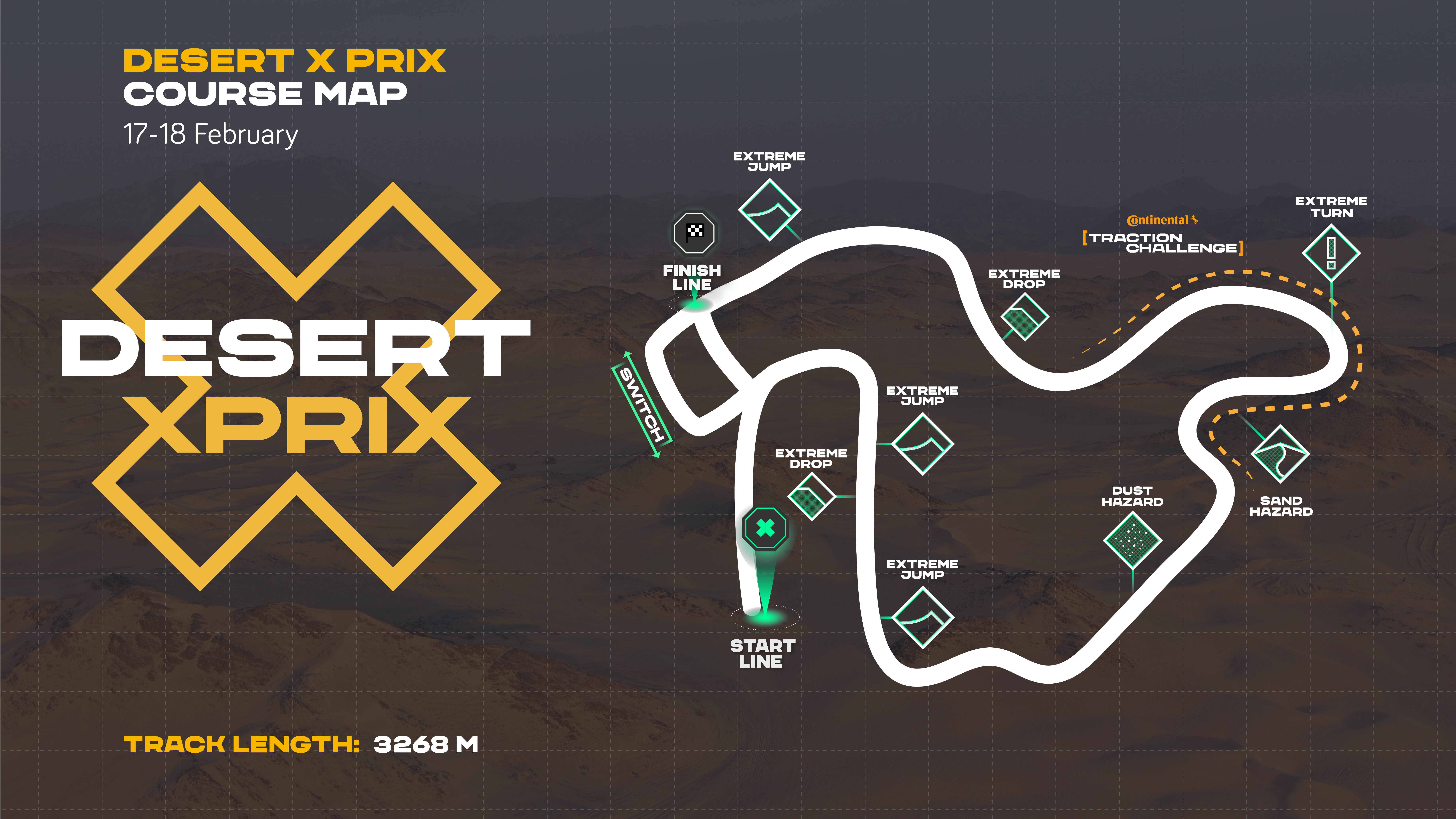 O’Donovan continued: “There are a lot of possibilities for overtakes on this course. What’s good about the desert compared to other tracks is in theory if the car allows you to do it, you can go 20 metres out wide after one waypoint and come back in as long as you get to the second waypoint between the flags. It will be interesting to see how the drivers utilise the multiple lines to their advantage, and to see who figures out the best approach to each jump and tight braking zones to get ahead.